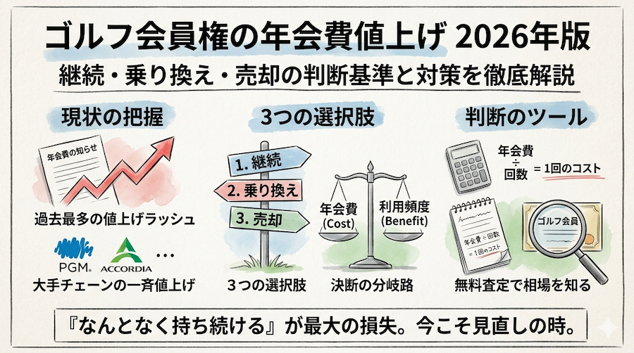 2026年は過去最多の211カ所以上のゴルフ場が年会費を値上げ。PGM・アコーディア系を中心に、業界全体で値上げラッシュが起きています。